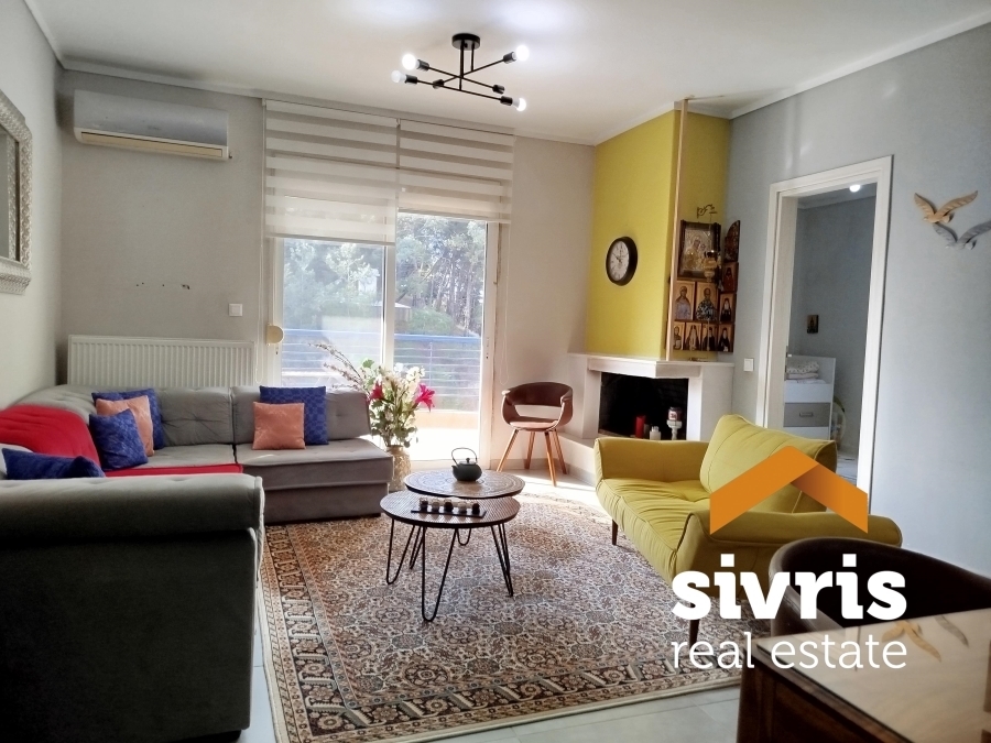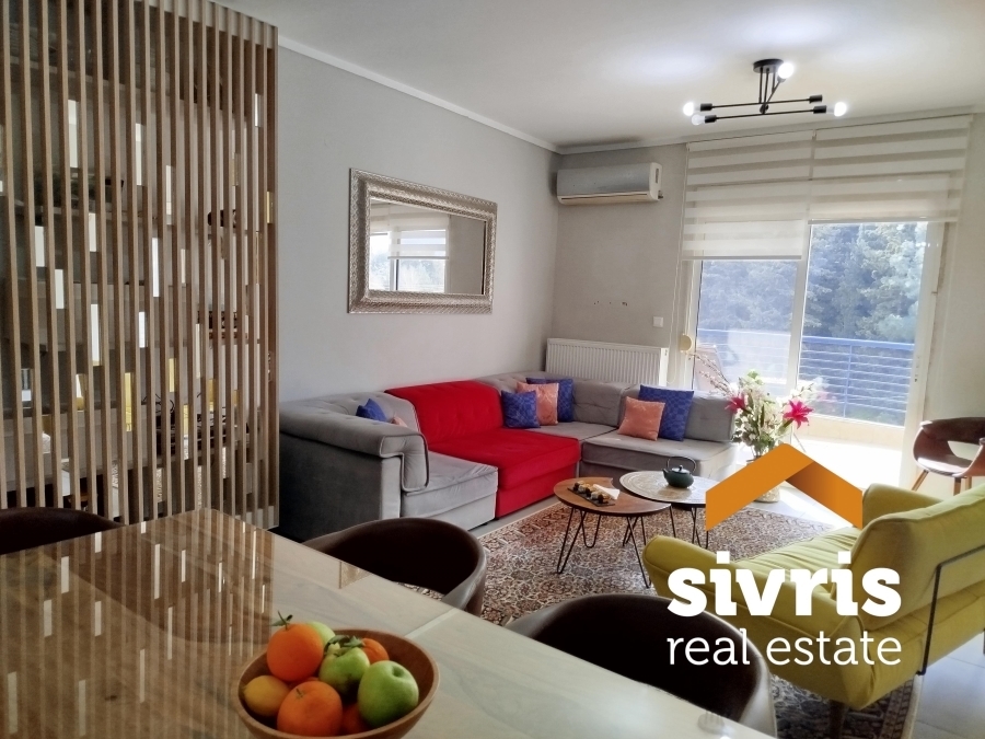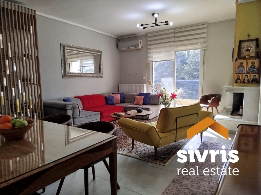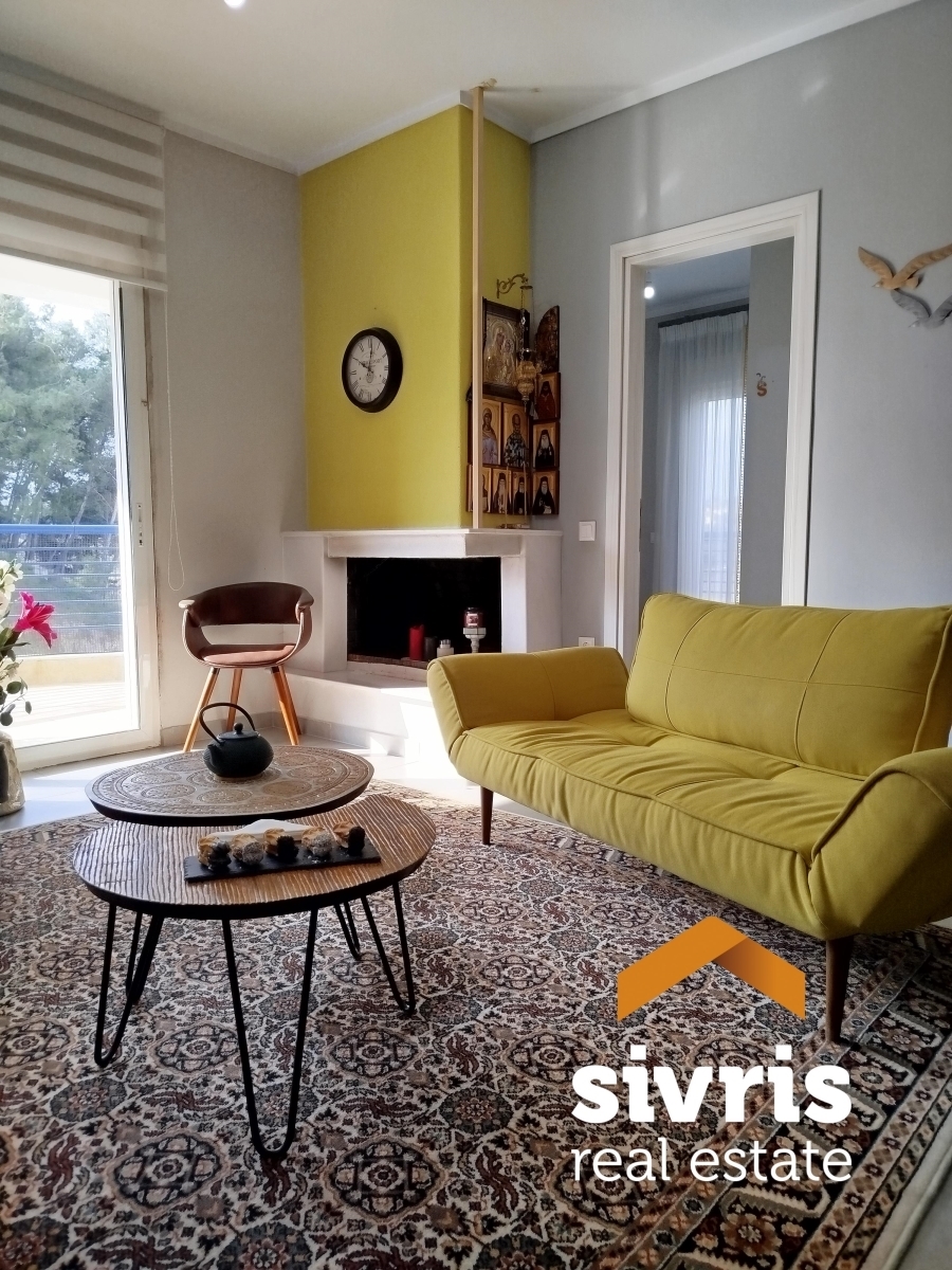 Το διαμέρισμα βρίσκεται στον τέταρτο όροφο οικοδομής που διαθέτει ανελκυστήρα. Ο εσωτερικός χώρος του διαμερίσματος αποτελείται από τρία υπνοδωμάτια (δυο μεγάλα και ένα μικρότερο) ένα εκ των οποίων περιλαμβάνει μεγάλη ντουλάπα, ένα καλαίσθητο σαλόνι με τζάκι, ολοκαίνουργια κουζίνα με island, άνετο μπάνιο με ντουζιέρα καιπαράθυρο. Το διαμέρισμα πλαισιώνουν οι τρεις βεράντες με θέα τόσο στην θάλασσα όσο και στο δάσος. Έχει καλό προσανατολισμό νοτιο-δυτικό και μεγάλη ανοιχτωσιά.