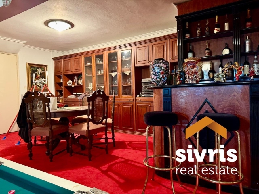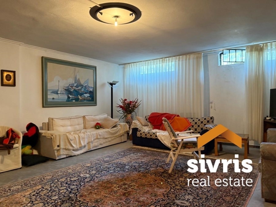 Κατασκευάστηκε το 1985 και ο ισόγειος όροφος (110τμ αποτελείται από ευρύχωρο σαλόνι με τζάκι, ξεχωριστή μεγάλη κουζίνα, χώρο για τραπεζαρία και WC. Το επίπεδο αυτό έχει άμεση πρόσβαση στον κήπο της οικίας ο οποίος είναι πλήρως διαμορφωμένος με γκαζόν και δέντρα και BBQ.