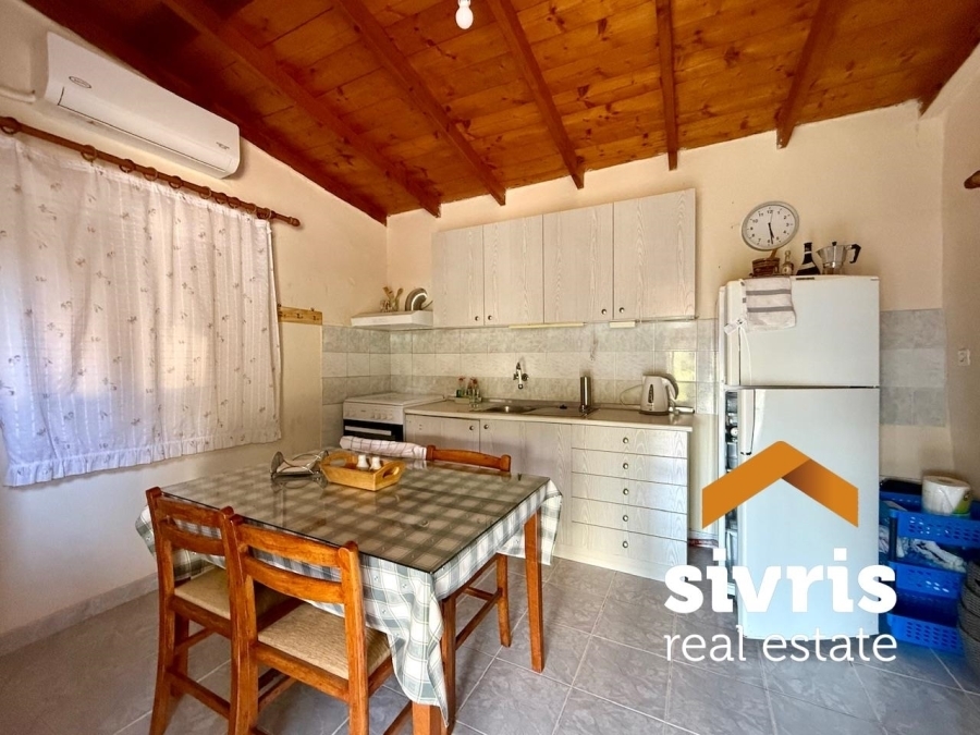 Moudania, Nea Potidaia, Detached house For Sale, 65 sq.m., In Plot 1505 sq.m., Property Status: Amazing, Floor: Ground floor, 1 Level(s), 2 Bedrooms 1 Kitchen(s), 1 Bathroom(s), Heating: Personal - Electricity, View: Unlimited, Building Year: 1995, Energy Certificate: E, 2 parking(s), Floor type: Tiles, Type of door frames: Aluminum, Features: Storage room, Electric Appliances, Double Glazed Windows, Balconies, Pets Allowed, No shared expenses, Price Negotiable, Airy, Roadside, Bright, AirConditioning, Trees, Back yard (Garden), Painted, Holiday Home, Distance from: Airport (m): 55000, Seaside (m): 1000, Price: 130.000€. Sivris Real Estate, Tel: 2392021441, email: info@sivris-realestate.gr